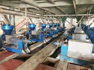 Primero se eliminan las impurezas en la despedregadora o clasificadora y luego el grano puro se transforma en el humedecedor intensivo; después de un humedecimiento intensivo y suave, el maíz se pela y tritura en el pulverizador. Después de extraer la harina, el maíz pasará por la máquina desgerminadora y separadora de gérmenes y se molerá aún más en el pulverizador. Al final del procedimiento, la harina de maíz producida será envasada por la máquina envasadora automática.